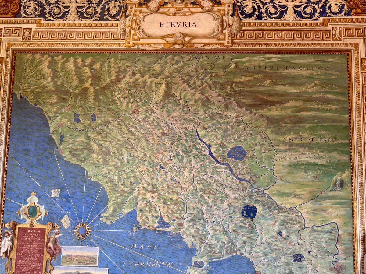 Этрурия – регион в Италии, который можно было найти еще в XVI веке на карте Италии. Галерея географических карт в музеях Ватикана, одна из фресок изображают Этрурию – территорию, которую ограничивают две реки: Арно во Флоренции и Тибр в Риме.